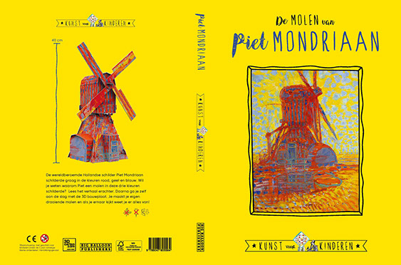 De wereldberoemde Hollandse schilder Piet Mondriaan schilderde graag in de kleuren rood, geel en blauw. Nederland is bekend om zijn grijze en blauwe wolkenluchten en molens. Dat schilderen kunstenaars ook heel graag. Wil je weten waarom Piet een molen in deze drie kleuren schilderde met losse dansende verstreken? Lees het verhaal hierover. Daarna ga je aan de slag met de 3D bouwplaat. Zonder schaar en lijm te gebruiken maak je je eigen draaiende molen en als je ernaar kijkt weet je er alles van!